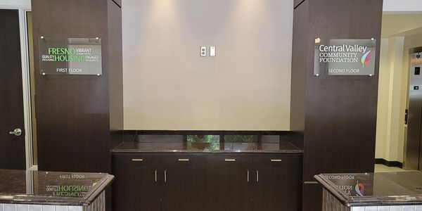 Monument signs are great, but they're not helpful for telling people what and who you are on the inside of the building - look no further than the humble Receptionist Area Graphic!